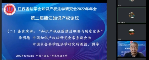 12月24日,江西省法学会知识产权法学研究会2022年年会暨第二届赣江知识产权论坛和首届江西青年知识产权学术交流会在江西南昌华东交通大学以线上形式举行。来自省内各高校、知识产权行政管理部门、企业、知识产权中介服务机构等近200位专家学者和实务管理人员等参会。