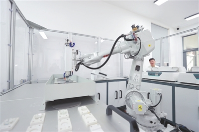 7月12日,今年投入使用的古陶瓷基因标本制样机器人正在制作标本。机器人柔性制样系统的应用大大提升了标本制作效率。