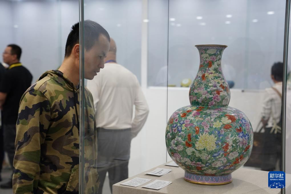 10月18日,参观者在瓷博会现场举办的第六届世界华人收藏家大会瓷器精品展上拍摄展品。新华社记者 周密 摄pagebreak