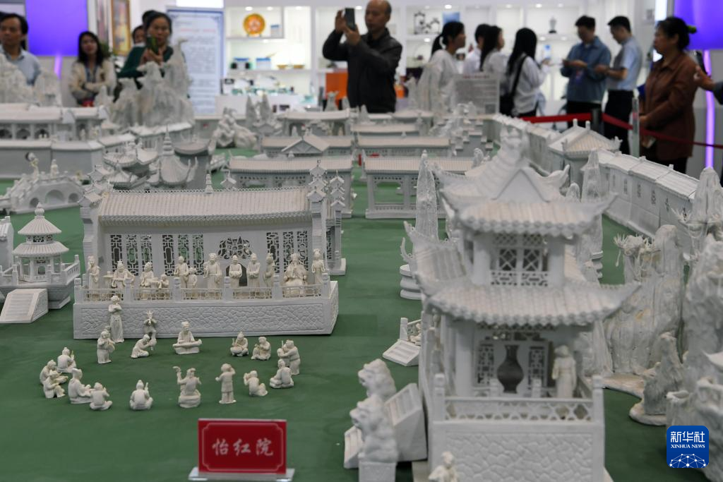 10月18日,人们在瓷博会现场欣赏展品《瓷造大观园》。新华社记者 马宁 摄pagebreak
