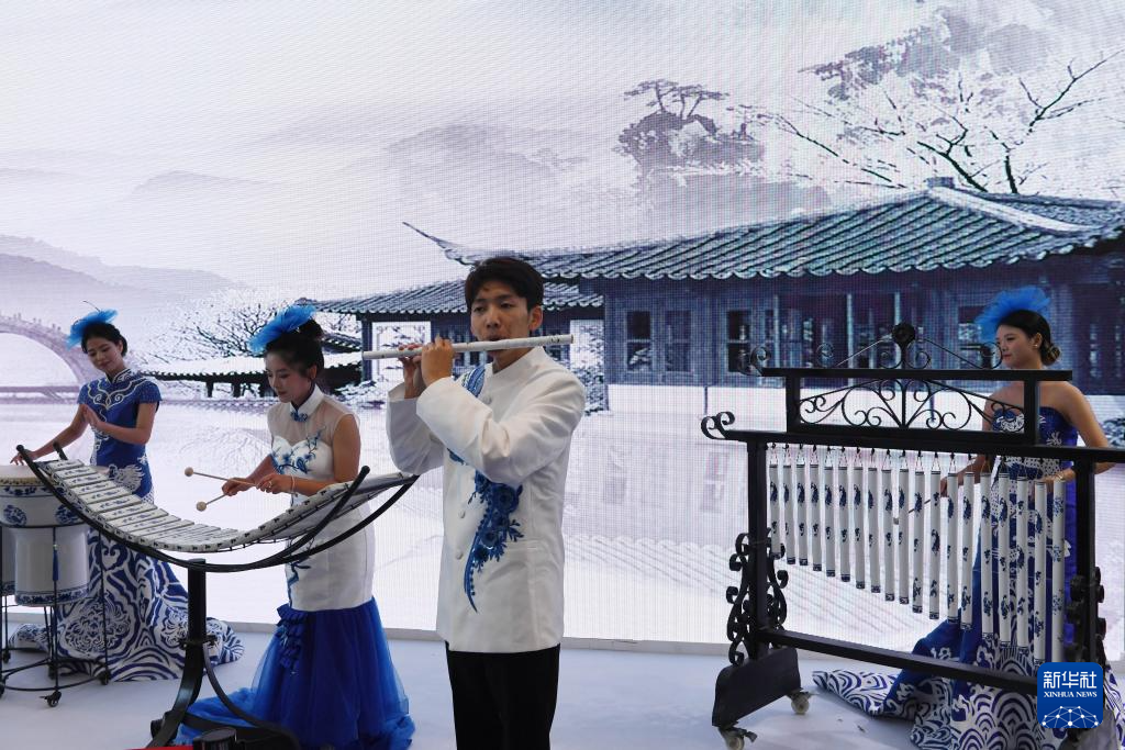 10月18日,演员在瓷博会现场演奏陶瓷乐器。新华社记者 马宁 摄pagebreak