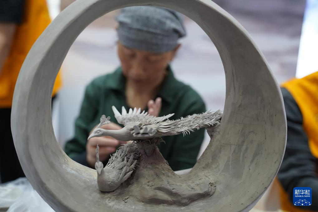 10月18日,在瓷博会瓷都工匠技艺展示馆,一名“瓷都工匠”在展示捏雕技艺。新华社记者 周密 摄pagebreak