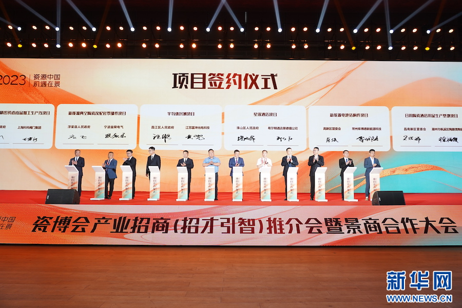 新华网南昌10月19日电(沈玉婷 王中庆 谭茜予)10月18日,2023瓷博会产业招商(招才引智)推介会暨景商合作大会在景德镇举行,18个项目成功签约,涉及先进陶瓷等多个领域。