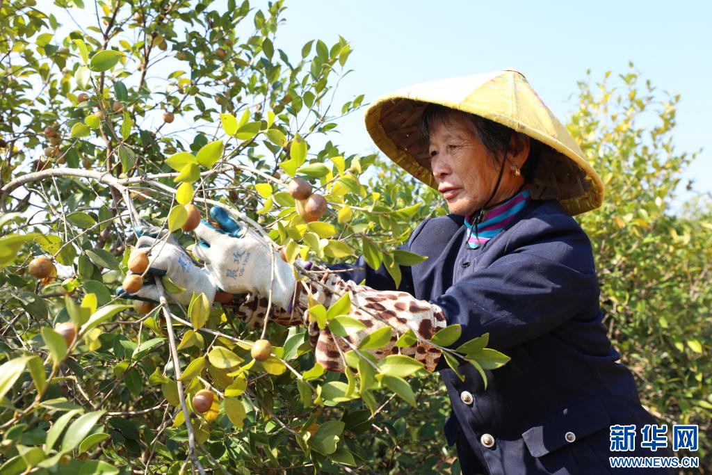 乐安县油茶进入最佳采摘期。新华网发 邱志超 摄