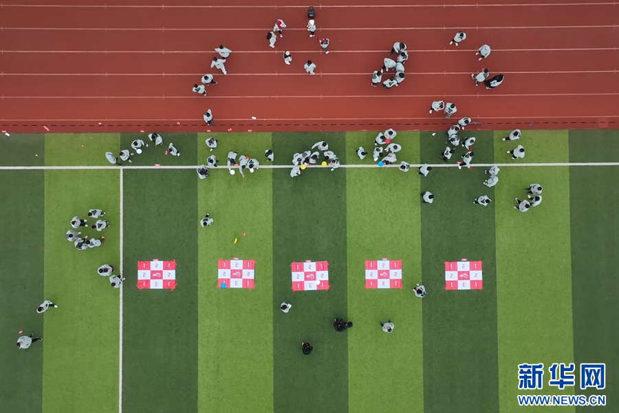 图为参赛选手在进行跑步接力比赛。新华网发 高云辉 摄