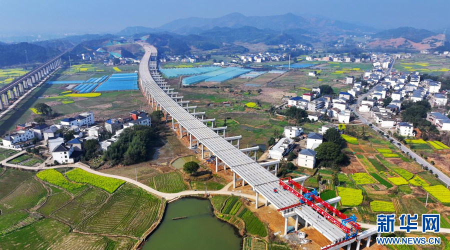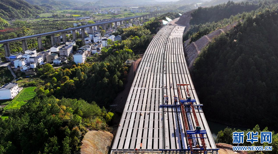 ▲上河五号大桥位于上饶市广信区罗桥街道横山村委会上河附近,全长398米,桥宽41米,依山而建,邻水而成,与高铁线并肩而行,一幅诗意山水、精美大桥的画作跃入眼帘。新华网发