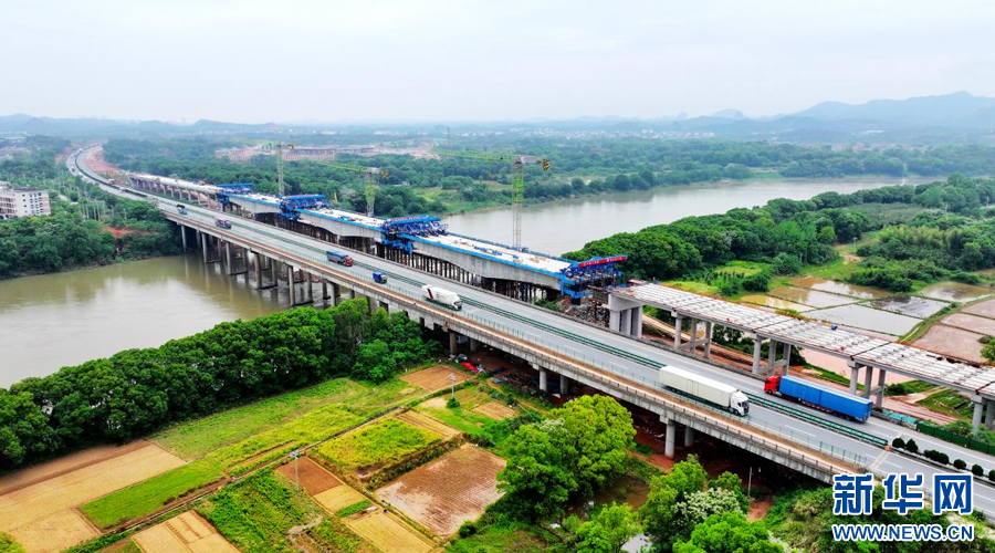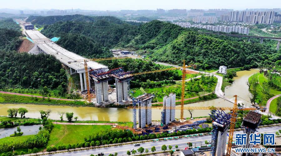 ▲上河一号大桥全长648米,宽41米,预计在2024年11月完成主桥合拢贯通。上河一号大桥就像一条纽带,跨山越水,连接着城市与乡村。新华网发