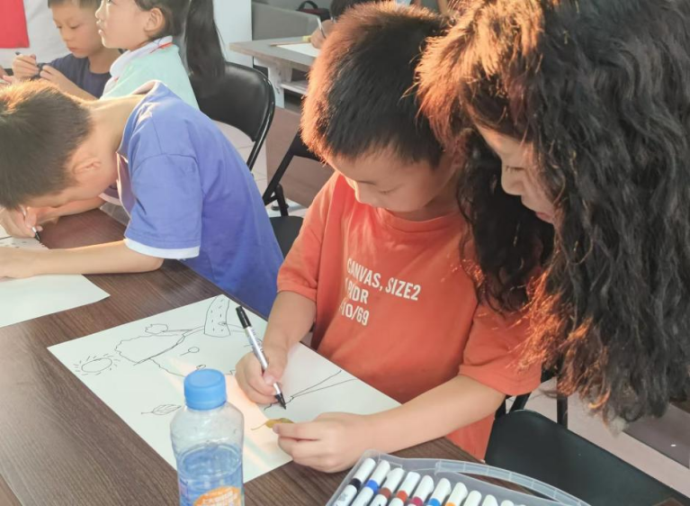 课堂上,孩子们的笑声和画笔的沙沙声交织在一起,构成了一幅温馨而美好的画面。他们的作品虽然稚嫩,但却充满了童趣和创意,每一幅画都是他们内心世界的真实写照。