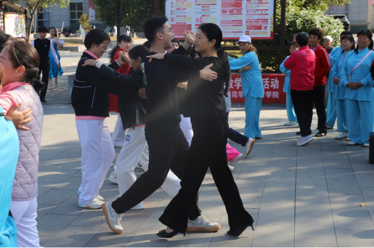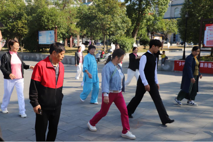 为促进养老助老服务健康发展,更好地实现“老有所学”“老有所乐”,近日,江西德兴市花桥镇人大联合镇老干办等部门开展“乡村老人体育康养服务”教育教学实践活动,邀请上饶师范学院体育学院教师到该镇老年大学为学员们进行太极、交谊舞、健身操等体育项目的教学指导活动。