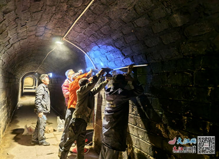 12月6日,在莲花塘人防工程改造项目现场,原本昏暗的防空洞内已经安装了明亮的灯带,使整个空间变得光亮如昼,同时增添了一份特别的景致。多名来自石鼓村的工人正忙碌地清理着防空洞深处的垃圾和杂物,这些村民在农闲期间在这里工作,增加了他们的收入来源,同时也为其他地区提供了可借鉴的就业帮扶模式。