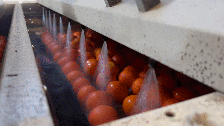 在生产车间里,经过杀菌、榨汁、封装等环节