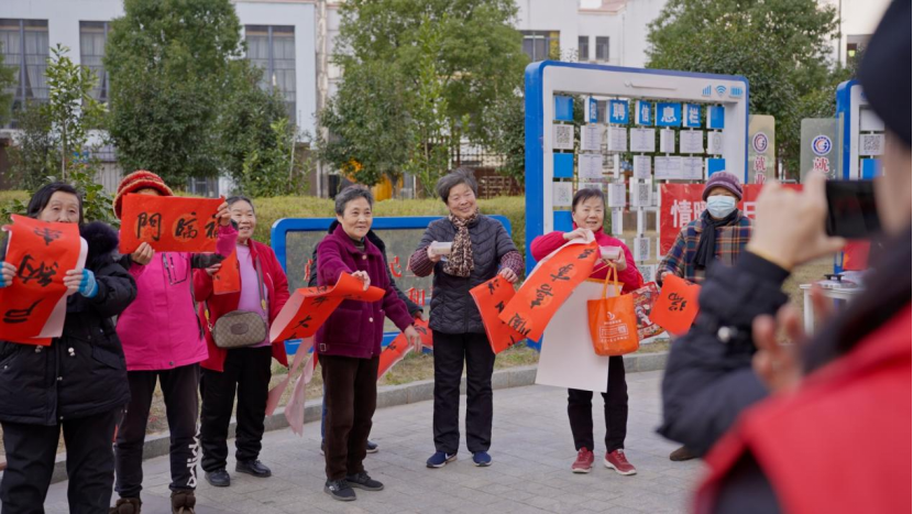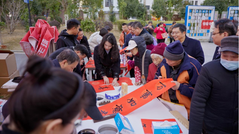 活动现场,中国书法家协会会员、高级工艺美术师、国家二级美术师、南昌市政协常委陈云海等三位著名书法家挥毫泼墨,与南昌市“党建+金融”共建联盟的党员和志愿者代表携手合作,在一张张红纸上书写着对新年的美好祝愿和对人民群众的深情祝福,一股股“福”气弥漫在社区各个角落。