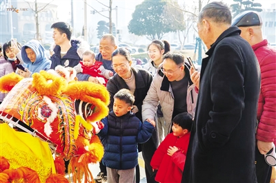 “咚咚锵……”伴随锣鼓声响,两条金色长龙在南昌青山湖万象汇广场翻腾起舞,省级非遗项目“双龙戏珠”表演正式开始。市民周裕盛兴奋地举起手机拍摄。“孩子第一次见到这么震撼的舞龙,这才是过年的样子!” 周裕盛说。