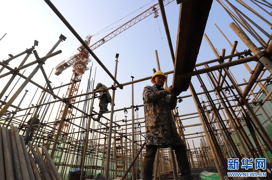 2月14日,吉安市安福县洋门乡边贸市场建设工地的工人们正在安装脚手架。新春伊始,该项目建设工地一派红火景象,建设者挥汗奋战,确保项目按期竣工交付。新华网发 刘丽强 摄