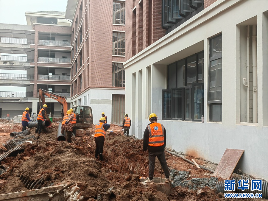 在南昌中学配套九年一贯制学校建设项目现场,工人们正在进行室外综合管网施工。春节过后,南昌市红谷滩城投集团各在建项目快速按下“复位”键,以“开局即决战、起步即冲刺”的姿态,跑好开局“第一棒”。新华网发 汪皓东 摄