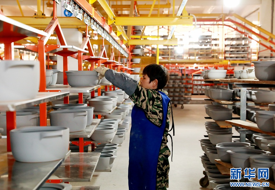 走进江西帮企陶瓷股份有限公司生产车间,5条智能生产线正满负荷运转,一排排精美的陶瓷产品源源不断地从生产线上产出,工人们忙碌而有序。当前,抚州市黎川县工业园区内一片繁忙景象,各工业企业正开足马力,奋力冲刺一季度“开门红”。新华网发 刘仕伟 摄