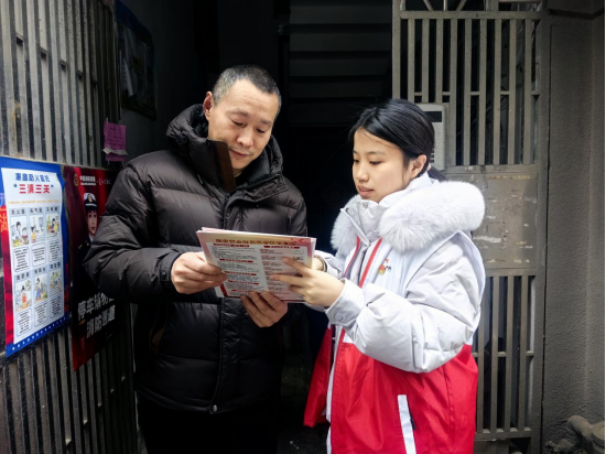 南昌市西湖区烟草专卖局安全员小邓正在给社区居民讲解家庭防火知识。
