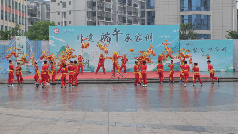 上午9时,扭扭龙表演率先点燃全场热情,彩龙翻腾起舞,活灵活现的表演引得现场观众阵阵喝彩。12组优秀家庭代表依次登台,通过展示家训牌,传递崇德向善的文明风尚。舞蹈方阵以《青蛇与白蛇》《汉唐国风》等创意编排,将传统艺术元素与端午文化相融合,当全体演员齐诵《离骚》选段时,千年文脉在琅琅书声中激荡回响。
