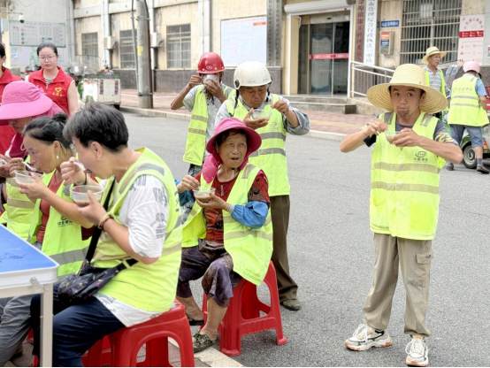 “大热天能喝上这么一碗清凉的绿豆汤,真是太舒服了!我们扫地虽然辛苦,但看到城市干净整洁,心里也觉得高兴。社区这么关心我们,一切辛苦都值了。”李师傅一边喝着汤,一边和志愿者交谈。