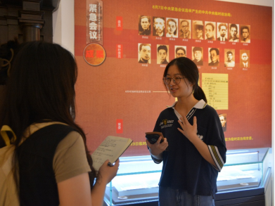 为追寻革命先烈的足迹,实践队来到八七会议会址纪念馆,纪念馆二楼那间20平方米的密室瞬间将队员们拉到1927年。泛黄的《“八七”会议记录》原件静静陈列,“枪杆子里出政权”的论断如惊雷穿透岁月。