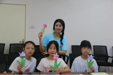 在后续的课程中,队员们带领孩子们畅游色彩与形状的王国。折纸课上,一张张普通的彩纸在孩子们灵巧的指尖翻飞,变幻出栩栩如生的花朵、飞鸟;色彩课程则鼓励孩子们大胆挥洒颜料,感受色彩的奇妙融合与情感表达。模型制作课程更是将动手乐趣推向高潮——超轻粘土的塑形让孩子们体验创造的柔软与自由,而精细的建筑模型拼装则锻炼了他们的耐心、专注力与空间感知能力,一座座微型建筑在专注的目光中逐渐成形。丰富多彩的特色课程之外,实践队员们还安排了作业辅导环节,队员们耐心解答孩子们在暑假作业中遇到的难题,帮助梳理知识点,巩固学习基础,为孩子们新学期的学习增添一份保障。