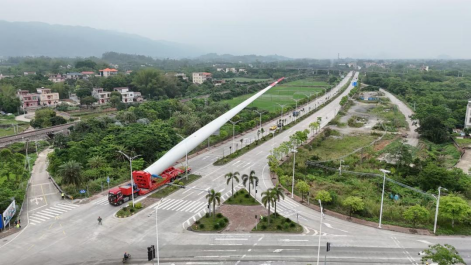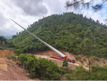 这些风机组件单个机舱宽4.95米,叶片长达108米,塔筒直径5.3米,最大设备质量超130吨。如何将风气组件运输到点位成为摆在中国电建集团江西省电力建设有限公司眼前的首要难题。