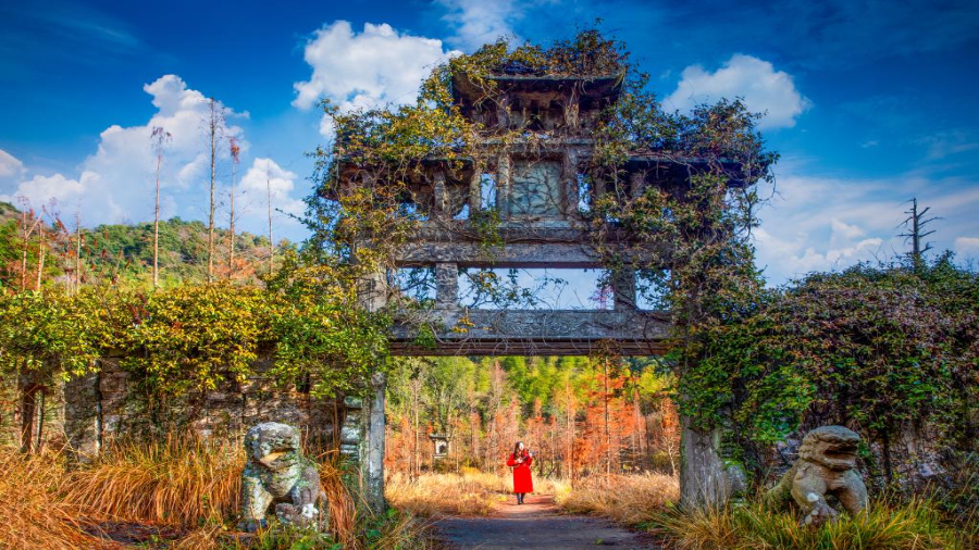 但遗址山林间的残碑古柏