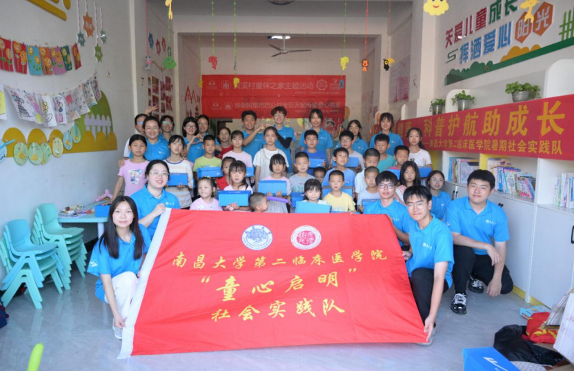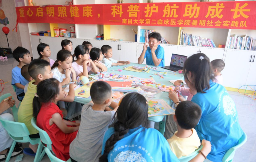 近日,南昌大学第二临床医学院暑期社会实践队走进遂川县黄坑乡,开展了一场内容丰富、形式多样的健康科普活动。此次活动以“童心启明照健康,科普护航助成长”为主题,紧扣留守儿童健康成长的实际需求,精心策划了防溺水安全教育、科学护眼指导、儿童减重干预等五大主题的科普内容,全方位、多角度地为孩子们的健康成长撑起“保护伞”。