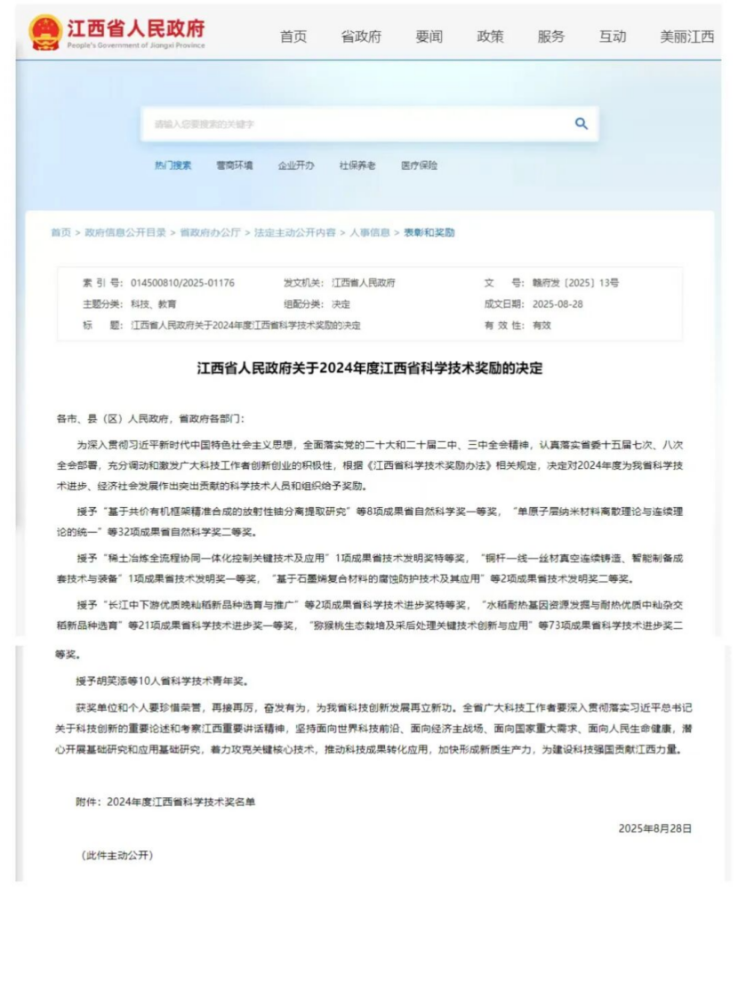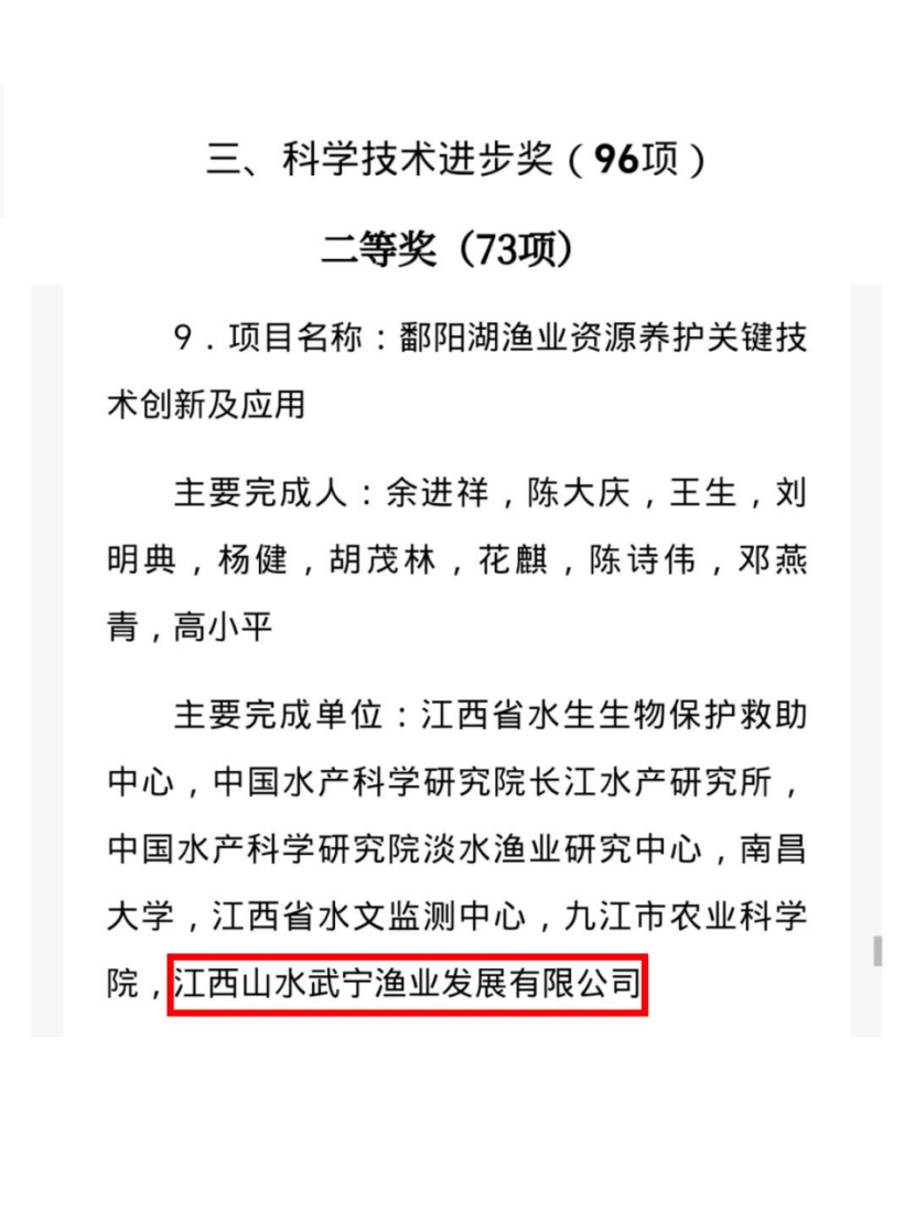 近日,2024年度江西省科学技术奖评选结果揭晓,由江西农发水产集团下属江西山水武宁渔业发展有限公司参与的“鄱阳湖渔业资源养护关键技术创新及应用”项目,获省科学技术进步奖二等奖,为渔业资源保护领域再添佳绩。