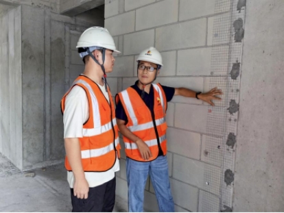 真正的成长在实战中淬炼。王能敖依稀记得,转岗后第一次负责砌体工程技术交底,他照搬市政工程的交底模式,以为依旧适用。然而张权政看到交底文件后,却没急着否定,而是带着他去砌体作业面,指着已砌筑的墙体进行现场教学。“房建工程‘细’字当头,交底得把‘标准’讲透。你看这片墙,拉结筋规范要求至少植10厘米,不然后期墙体容易开裂;还有这个过梁,两端支撑长度如果不够,承重会出问题......”那天下午,张权政陪着王能敖重新梳理交底内容,补充了12项房建专属技术要求,还带着他给班组工人现场演示,确保每个人都理解到位。这样的场景,却只是师徒俩一路走来的小小缩影。