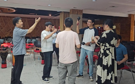 沙龙下半场,胡老师带领老师们参与“鼓圈”团体互动。这个过程不仅是音乐的创造,更是一次团队精神的生动实践,让每一位老师在鼓点的共鸣中同频共振,释放了日常工作的压力,深刻体会到了“同创同行”的协作之乐。