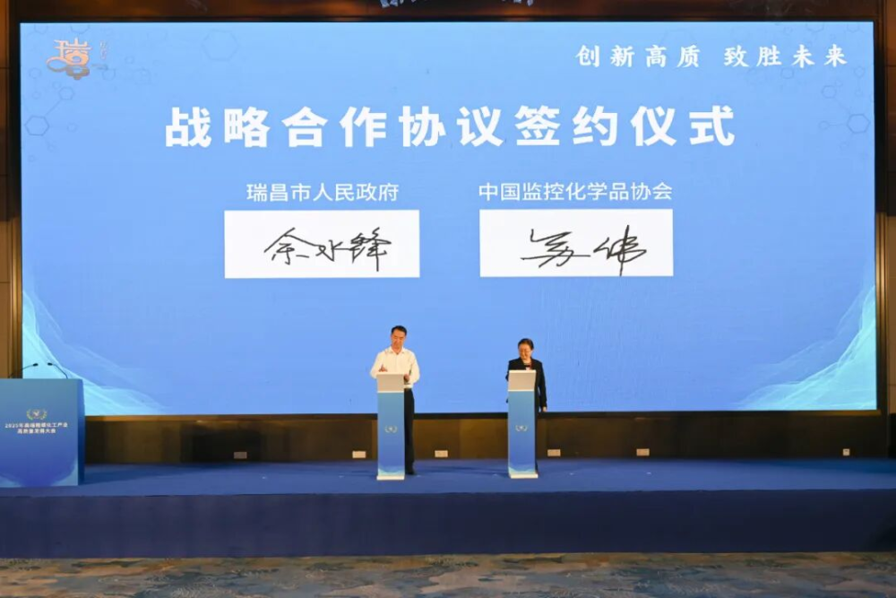 会上,瑞昌市与中国监控化学品协会签订战略合作协议。大会还举行项目集中签约,瑞昌市分别与江西理文化工、江西大涅生物能源科技、山东翔飞氢能源科技、安徽瀚驰生物科技、北京三帝科技股份签约,进一步壮大产业集群。