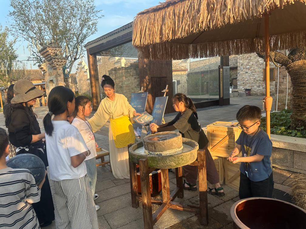 在“乃粒”(谷物种植)主题区,游客们亲手参与传统农耕工具的制作,在一凿一锯的实践中,亲身感受 “春种一粒粟,秋收万颗子”的农耕智慧与劳作艰辛;步入 “乃服”(纺织衣物)专区,缫车轻转,织机声声入耳。游客李女士在非遗传承老师的耐心指导下尝试织布,完成后兴奋地说:“一线一梭亲自操作下来,才真正体会到古代工匠的智慧与辛劳,这种体验比单纯看书更有意义。”