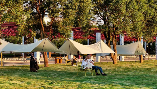 夜幕降临,精彩丝毫未减。MOJ咖啡草地集市里,大学生带来的草地音乐会轻柔动听,大家坐在充气沙发上,喝着咖啡听音乐,白天游玩的疲惫一扫而空。