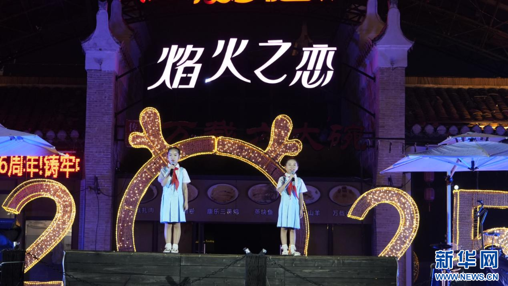 活动现场,红色文化知识问答环节气氛热烈,观众争相举手抢答,在互动中重温红色历史。当《大中国》《南湖的船》等经典旋律响起,台上台下瞬间汇成合唱的海洋,豪迈的歌声与绚烂的烟花交织,将现场的氛围推向高潮。最后,《歌唱祖国》的旋律响彻古城,感染着每一位游客。