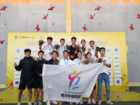 近日,以“新火燎原 攀无止境”为主题的2025年中国速度攀岩系列赛(福建南安站)在南安市九都镇天空骑士攀岩基地落幕。本次比赛汇聚了来自全国各地15支代表队的81名顶尖运动员,在15米高岩壁上展开为期3天的巅峰对决。江西应用技术职业学院攀岩队代表江西出征,凭借稳定发挥斩获佳绩,男子速度接力队登顶冠军,女子速度接力队摘得铜牌,另获男女混合接力赛第四名。