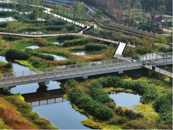 在这里,“水上森林”鹭鸣林岛生境和“水下森林”湿地鱼泽生境为更多的生物提供了理想栖息地,也为市民游客创造了四季景色绝佳的公共休闲空间。