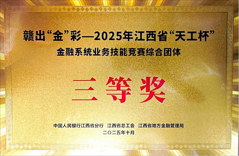 10月28日,2025年江西省“天工杯”金融系统业务技能竞赛圆满落幕。赣州银行凭借前期精心筹备与金融优化创新能力,在竞赛中勇于拼搏,整体出色表现,获得本次大赛团体三等奖,报送的赣银“虔飞贷”产品成功入围决赛现场展评并荣获全省科技金融项目一等奖。
