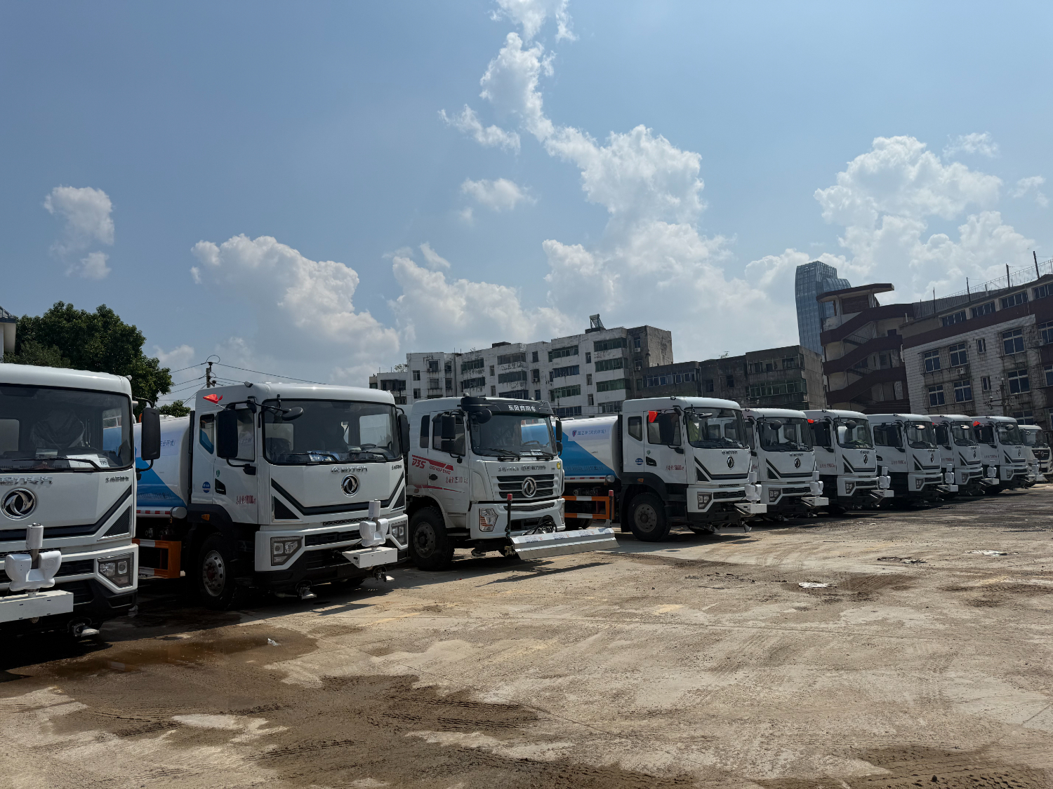 蓝天路之友环卫科技有限公司研发生产的新能源洗扫车正集结待发