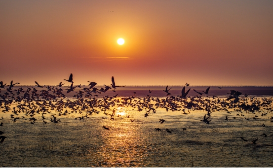 深秋时节的鄱阳湖,芦苇摇曳、万鸟翔集,构成一幅人与自然和谐共生的生态画卷。11月5日,在第四届鄱阳湖国际观鸟季即将启幕之际,2025年“江西省保护野生动物宣传月”启动仪式在“中国候鸟小镇”——永修县吴城镇举行。
