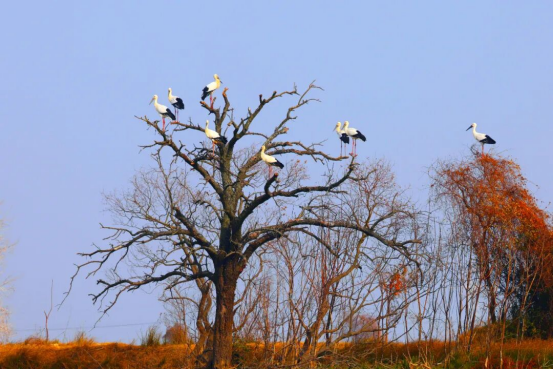 东方白鹳栖息吴城鄱阳湖树上。 王小龙 摄