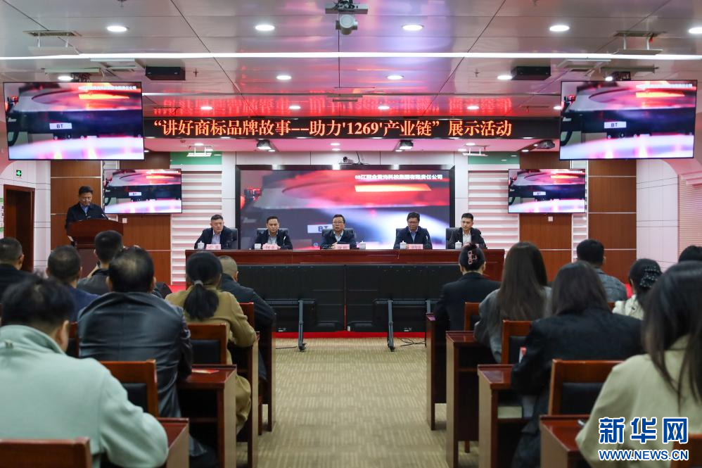 活动现场。新华网发新华网南昌11月11日电(吴亚芬 石斌)11月10日,“讲好商标品牌故事——助力‘1269’产业链”主题展示活动在南昌举行。这项活动旨在通过企业自身的视角,用短视频讲述品牌故事,为正在全力推进“1269”行动计划、构建现代化产业体系的江西,提供一种提升产业价值的新思路。