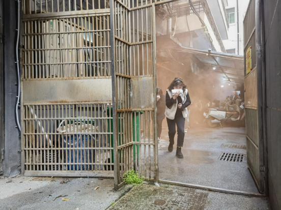 理论学习结束后,实战演练紧接着展开。随着一阵急促的警报声,“火情”突发,职工们按照预设方案,弯腰捂鼻、低头前行,沿着“会务遣散、逐层撤离、分散撤离”的路线快速有序疏散。短短29秒,所有人员全部安全集结到指定区域。