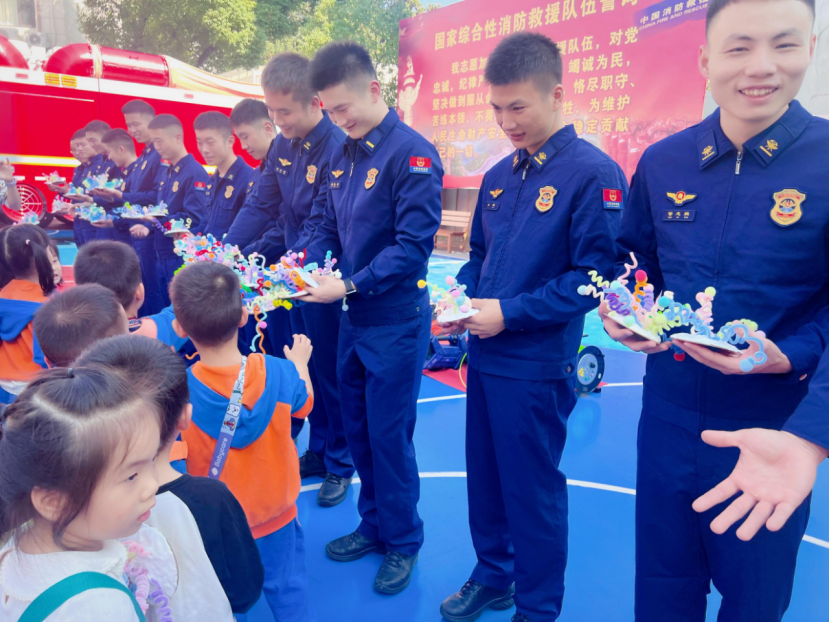 鹰潭市第二幼儿园学生们为消防员送上精心准备的小礼物。