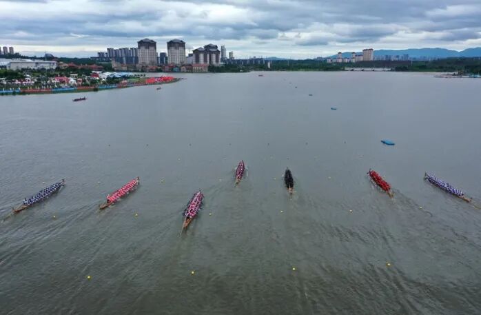 2025中国南昌国际龙舟赛在南昌市红谷滩区九龙湖水域开赛。新华社记者 周密 摄
