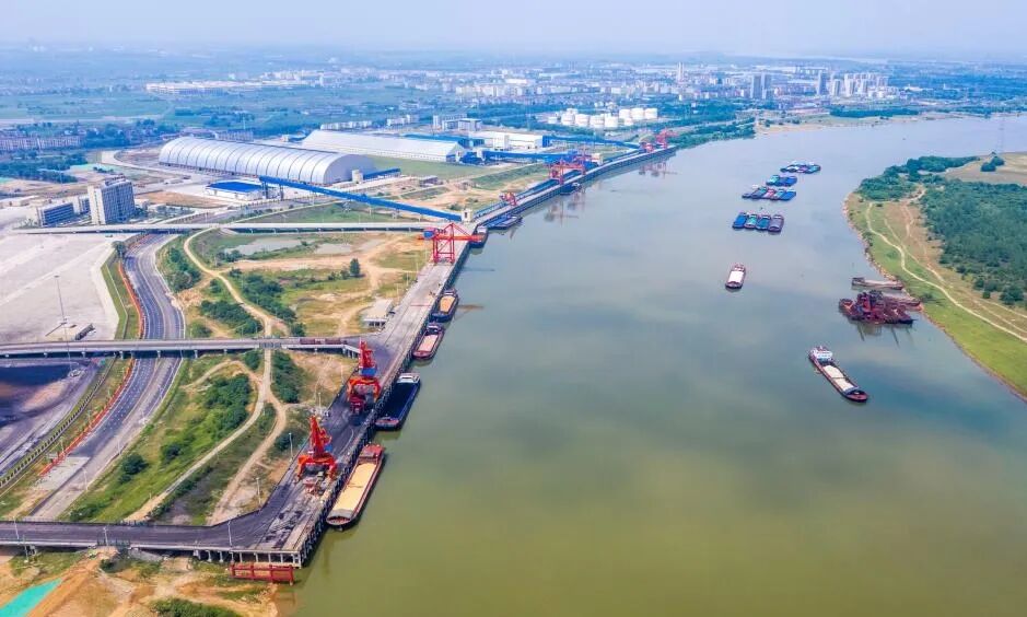 船舶在江西省宜春港樟树港区河西作业区综合码头装卸货物。周亮 摄