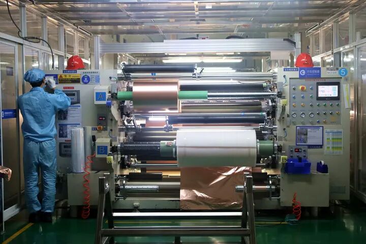 江西鹰潭的鑫铂瑞科技股份有限公司铜箔生产车间。新华网 王晓震 摄
