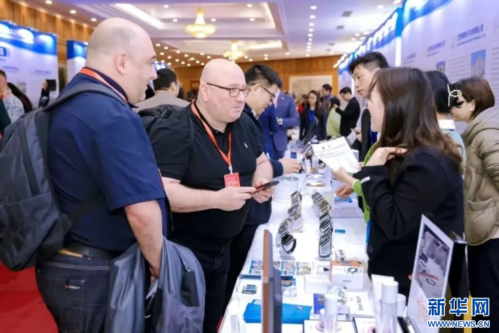 2023年第六届世界绿色发展投资贸易博览会上,国外参展商向市民介绍展出的产品。新华网发