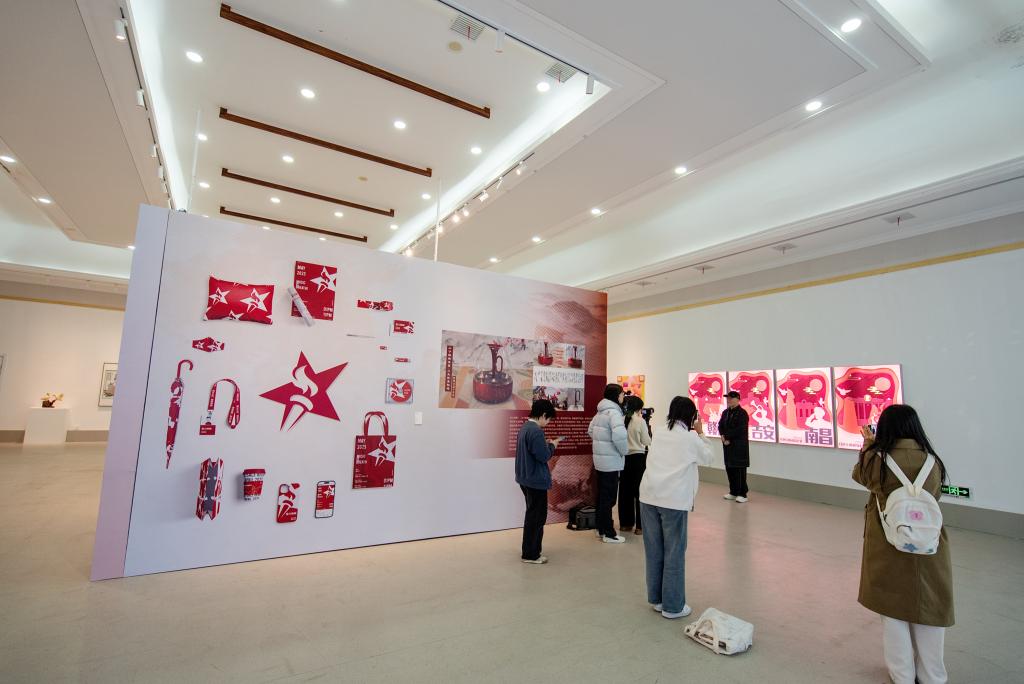 江西科技师范大学学生李双艳直言:“《剪影中的红色征程》的设计很特别,给人一种立体的感觉,而且契合了家国情怀的主题,色彩方面搭配得也很好,是我在展览里印象最深的作品。”江西科技学院学生叶林也分享了观展感受:“这些作品的画面都是年轻人能看得懂的风格,不像有的传统红色画作那样有距离感,尤其是《江西赣州·红色故都IP设计》的文创,把红色文化和帆布包、抱枕这些日常用品结合,感觉很新鲜,也很愿意去接触。”