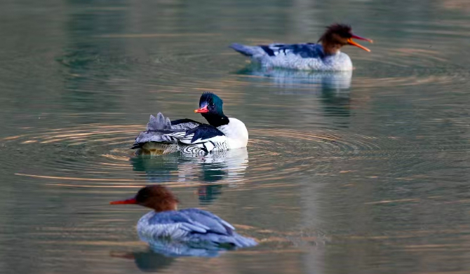 中华秋沙鸭是国家一级保护动物。它们连续19年选择修水作为越冬栖息地,成为当地生态环境持续向好的生动见证。